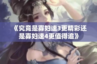 《究竟是寡妇速3更精彩还是寡妇速4更值得追》